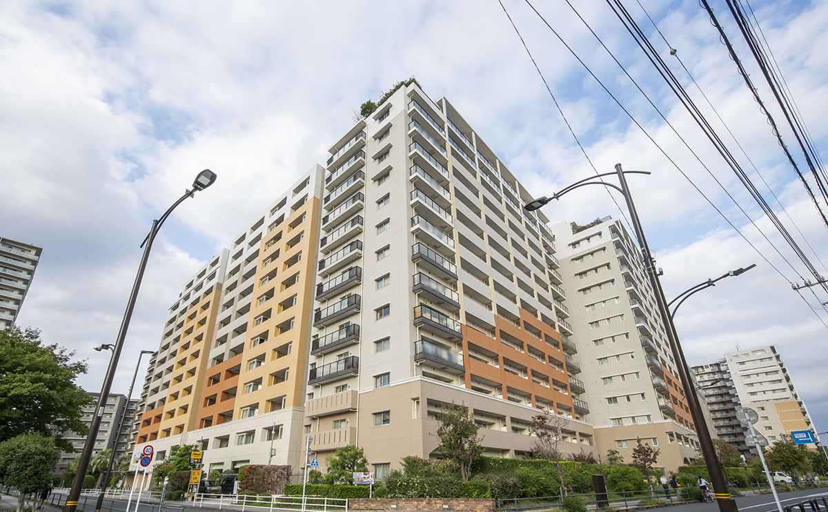 ロイヤルパークス有明地上15階建・総戸数642戸の大規模レジデンス。 フィットネスやサウナ、ゴルフレンジ、ビジネスラウンジ、シアタールーム、パーティールームを完備。